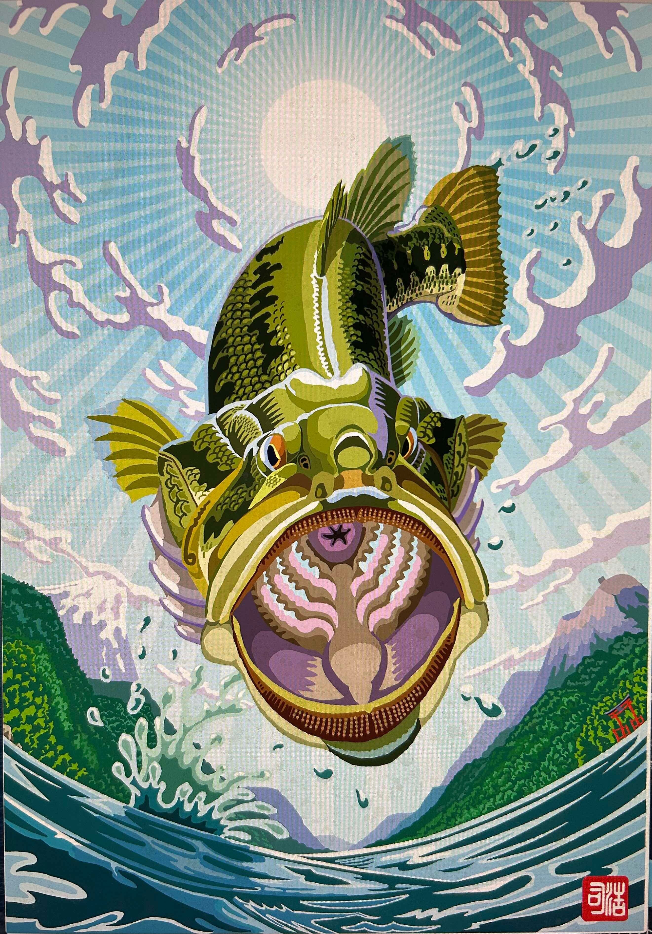 ブラックバス移入後100年を記念し八百板 浩司による描き下ろしデザイン。